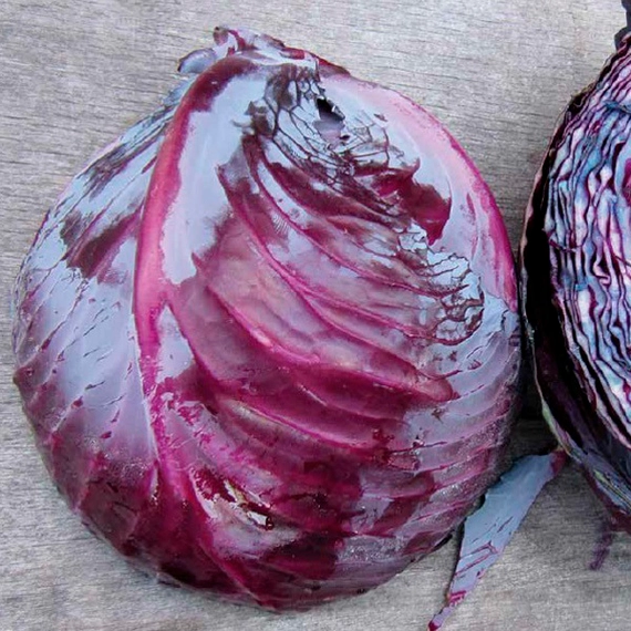 Кочан: 1,2-2,0 кг, округлый, плотный, красный (фиолетовый)