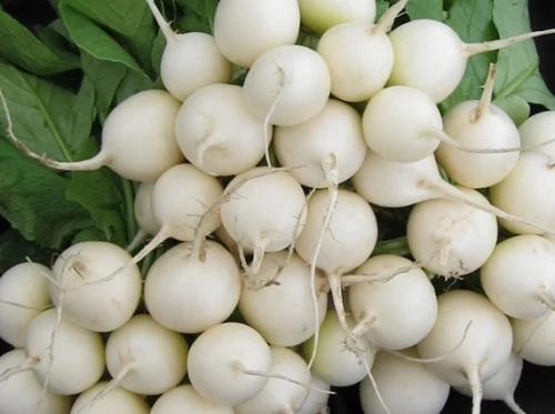 Корнеплод: 20-25 г, 3-4 см, идеально круглый, белый, белоснежная мякоть